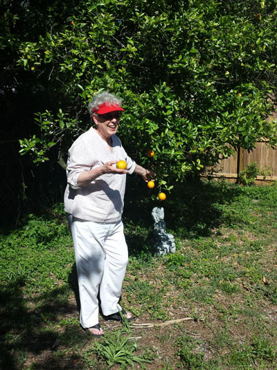 Linda with her adorable daughter who served us a delightful homemade snack! And, it is in her backyard where I saw my very first orange tree. Amazing.