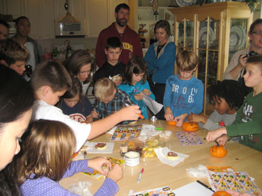 Family -- Nicholas' 10th birthday party 2011 Nicholas with half of the group watching tv and eating pizza - what a guy thing! Emily enjoying her pizza with Zachary to her right Colorful cake! Nicholas getting ready to decorate!! Everyone is getting in on the act phone: 410-610-2534 email: shar@sharonmunro.com 8339 Bay Crest Ct. Chesapeake Beach, MD 20732 Home Family Friends "Away Games" Beach Life Links