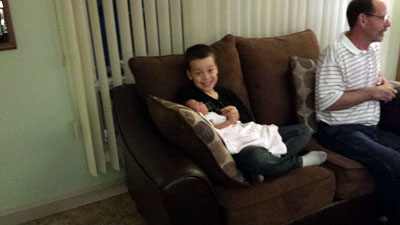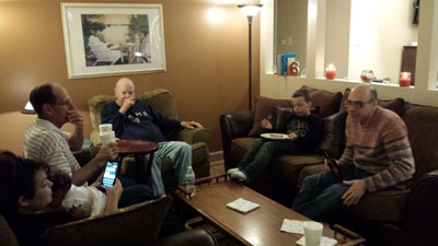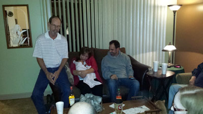 My brother Tom, his wife Barbara with her granddaughter, my son Jon, a little bit of Paul and again more hair from Jim and Pam.