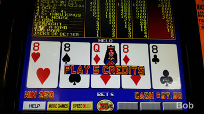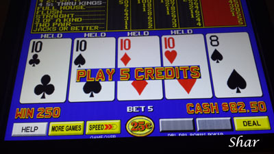 Following are some of my decent hits and hands that were actually DEALT to me (quarter, fifty cents and dollar) - for the video poker afficianados only.