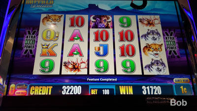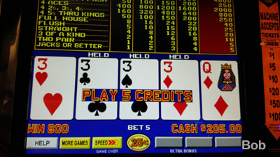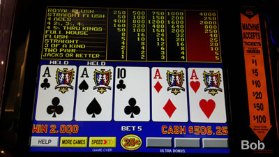 (Left) -- literally 10 minutes before our scheduled trip to the airport, Bob hit another set of Ultra Aces, but 50c this time! That last hit made his trip positive!
