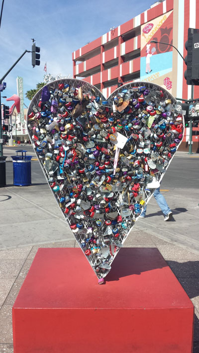Annie also found a lovely heart filled with padlocks - an unusual display to say the least - right outside the Container Park.