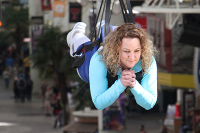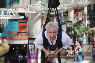 (Above) Bob was able to capture 13 seconds of Annie, Lisa, Jen and me zip lining down Fremont St. What an exhilarating experience (and a little scary, too). At one point, we were 77 ft. above the street. I simply yelled, "Oh my God" the entire way.