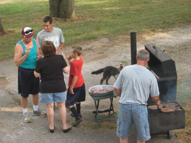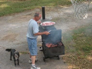 Kerry doing a superb job at the grill while sweating putty balls! |