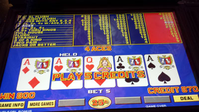 Some screen shots of Bob's wins - starting off with good old Aces for $200. |