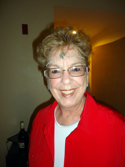 Am I having fun or what? One of the necklaces Lisa had given me ended up on my forehead. She thought it was time for a picture!! |