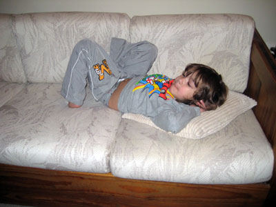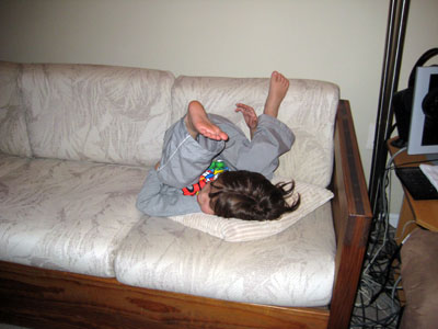 Zachary makes some quiet time for himself while his brother (Nick) and sister (Em) play